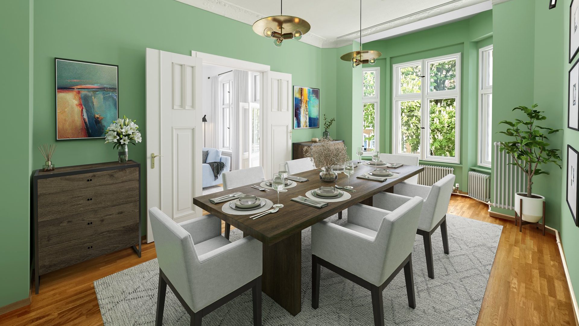 Diese besondere Eigentumswohnung im 1. OG eines Altbaus von 1907 bietet auf großzügigen 155,88 m² ein wunderschönes Wohnambiente. Mit insgesamt 5 Zimmern, inklusive drei potenziellen Schlafzimmern, präsentiert sich die Wohnung mit einem gut geschnittenen Grundriss. Ein langer Flur führt elegant durch die Räumlichkeiten und schafft eine großzügige Atmosphäre. Die vorderen beiden Zimmer eignen sich ideal als Wohn- und Esszimmer und sind durch altbautypische Flügeltüren verbunden. Mit Doppelkastenfenstern und kunstvollen Stuckdecken strahlen sie den Charme vergangener Epochen aus. Eine Loggia mit Südausrichtung und grünem Ausblick lädt zu entspannten Stunden im Freien ein. Zwei weitere Zimmer, perfekt als Kinder-, Gäste- oder Arbeitszimmer geeignet, sowie ein Badezimmer mit Dusche und Wanne, erreichen Sie ebenfalls vom Flur aus. Die offene Wohnküche im hinteren Bereich ist mit einer praktischen Abstellkammer ausgestattet. Ein besonderes Highlight ist das geräumige Hauptschlafzimmer mit fast 33 m², das einen Rückzugsort der Extraklasse bietet.