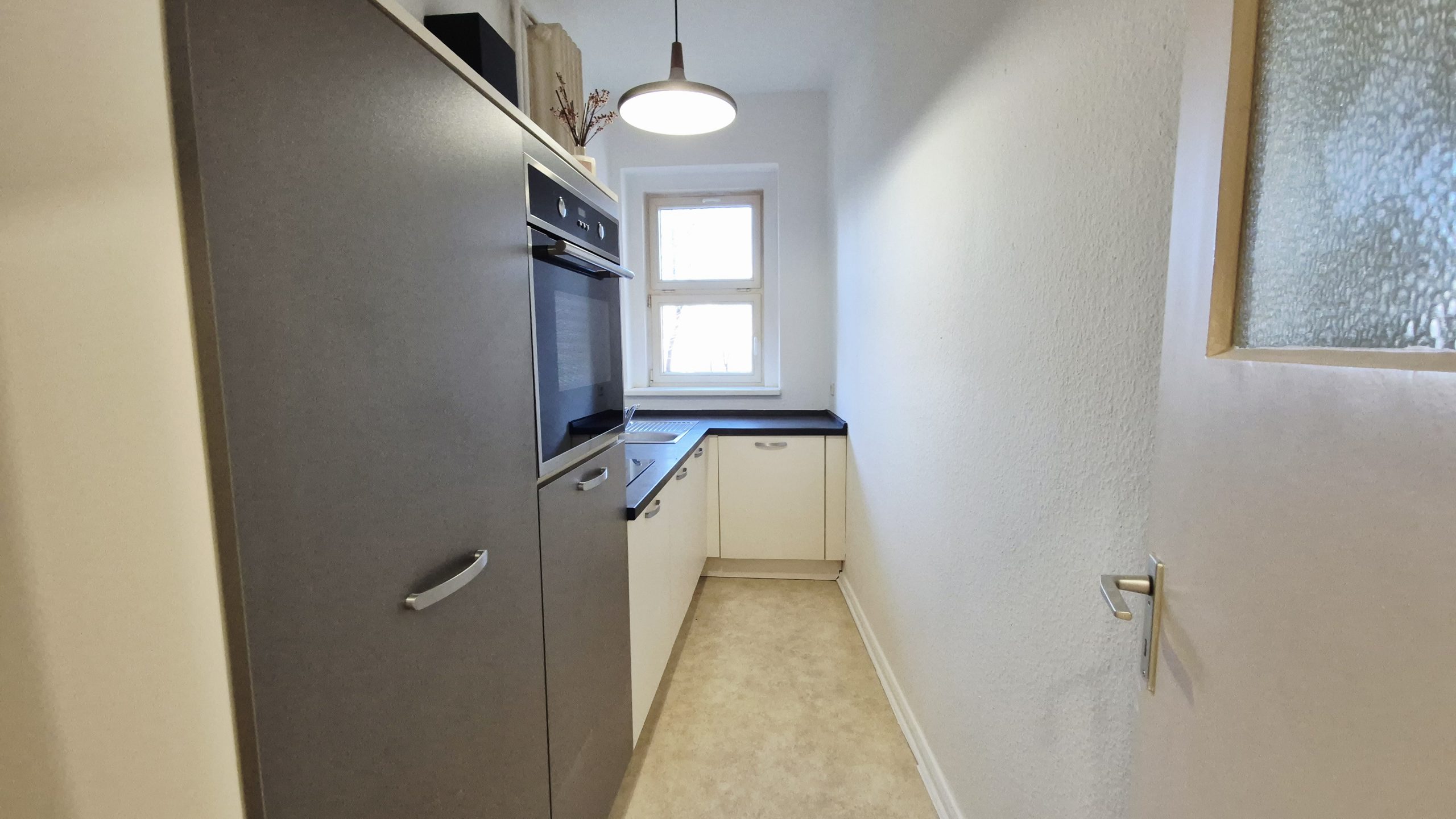 Die Küche besticht durch eine durchdachte Einbauküche und zeitlose, moderne Möblierung.
