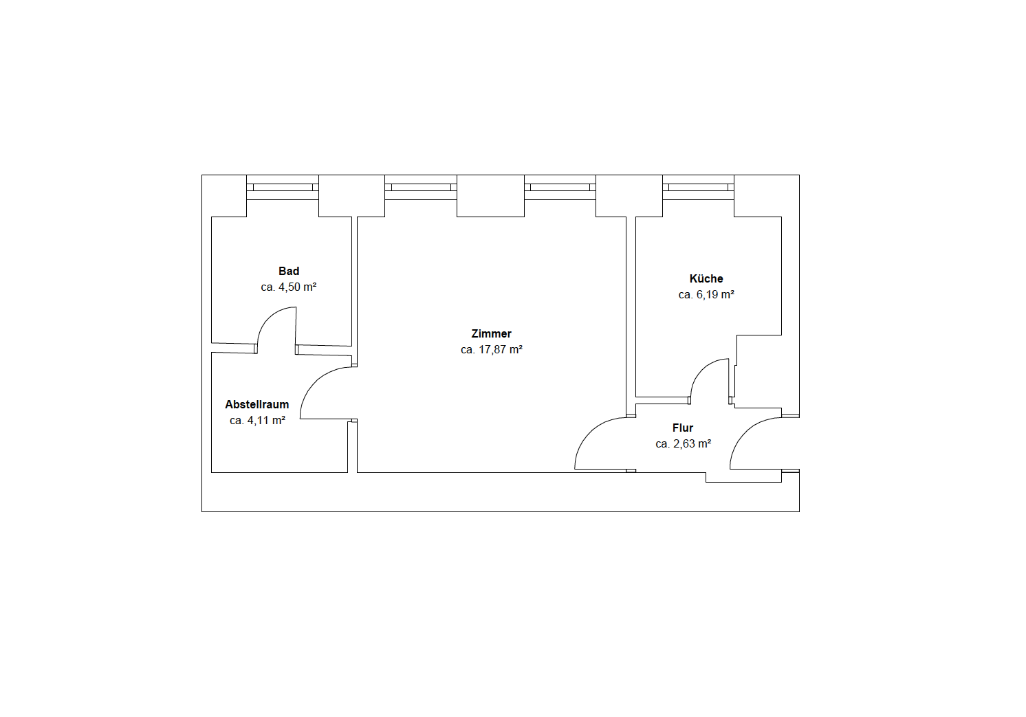 1 Zimmer mit ca. 35,30 m² Wfl.