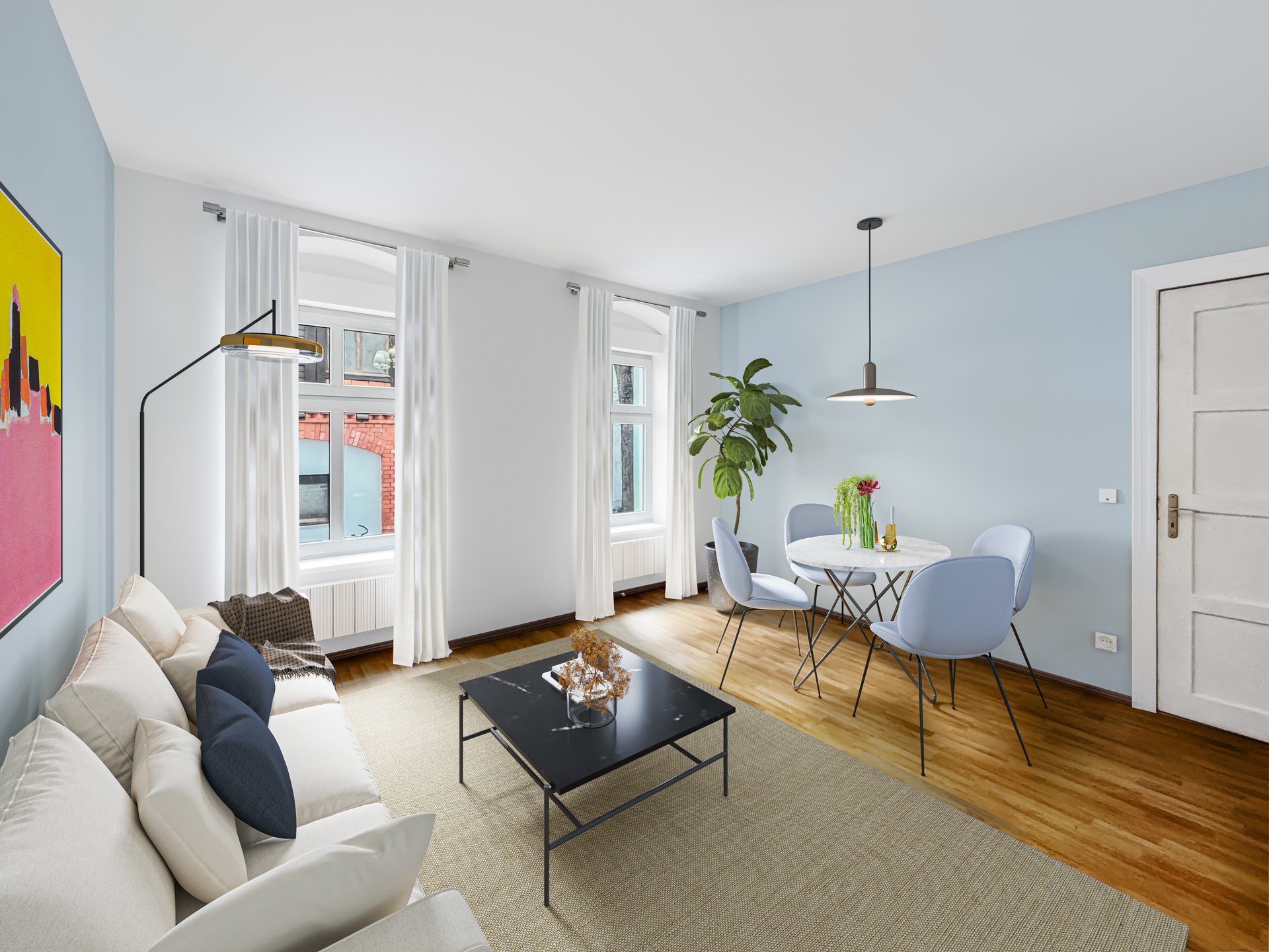 Die kompakte 1-Zimmerwohnung befindet sich im Erdgeschoss des Quergebäudes eines Altbaus aus 1900 und ist zur Hofseite ausgerichtet.  Mit einer Wohnfläche von ca. 35,30 m² ist die Wohnung perfekt für eine Person geeignet und bietet Ruhe sowie modernen Wohnkomfort.