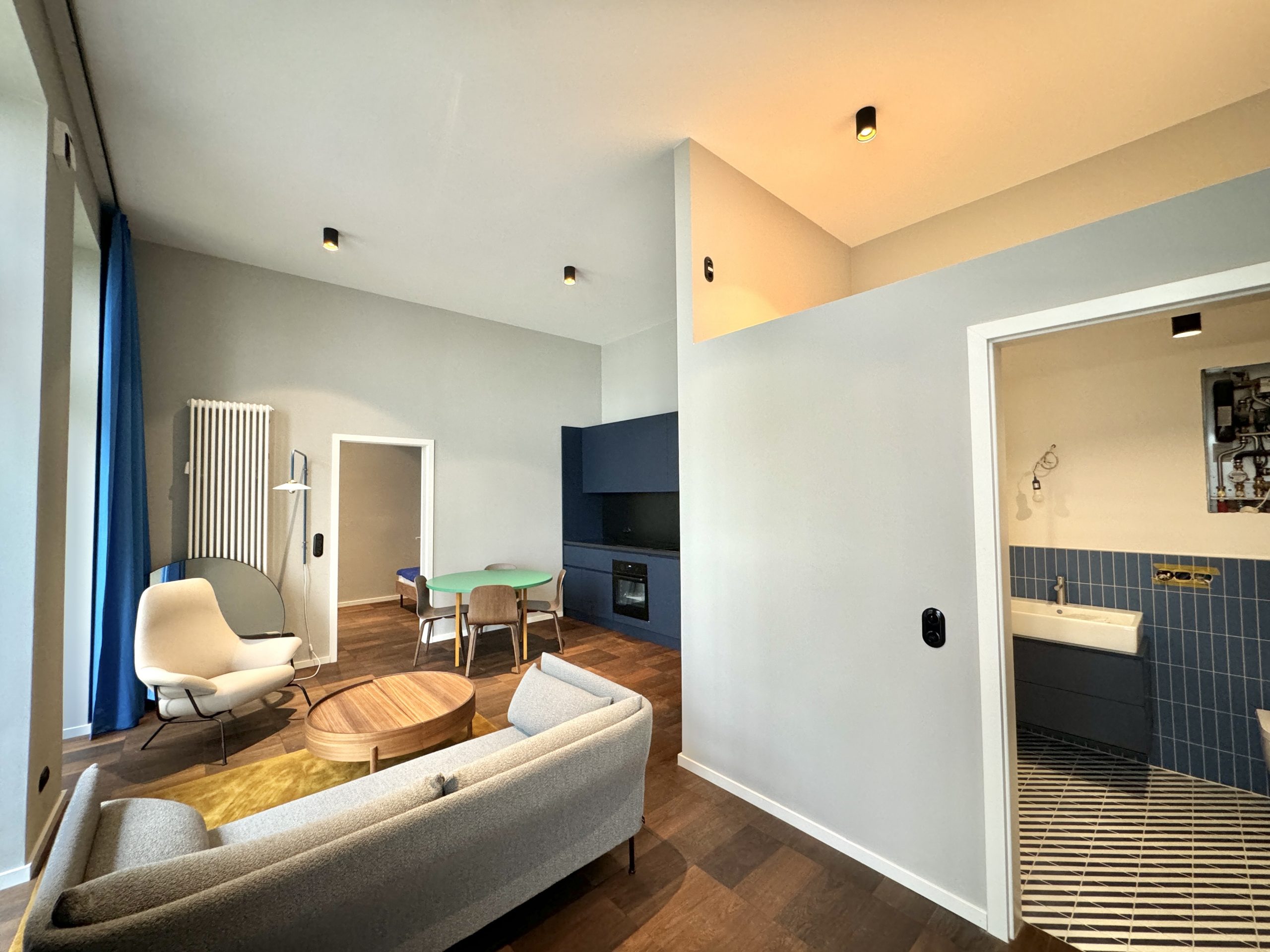 Diese charmante Erdgeschosswohnung im sanierten Altbau von 1900 liegt ruhig im Innenhof und bietet auf ca. 49,42 m² zwei stilvoll eingerichtete Zimmer. Der offene Wohn-, Ess- und Kochbereich ist clever in separate Zonen gegliedert. Das Schlafzimmer verfügt über einen komfortablen Ankleidebereich, während das moderne Duschbad durch sein Design überzeugt. Eine Hochebene bietet zusätzlichen Stauraum oder Platz für einen weiteren Schlafbereich. Die private Terrasse zum neu gestalteten Innenhof lädt zum Entspannen ein und macht diese Wohnung zu einem eleganten Rückzugsort in zentraler Lage.