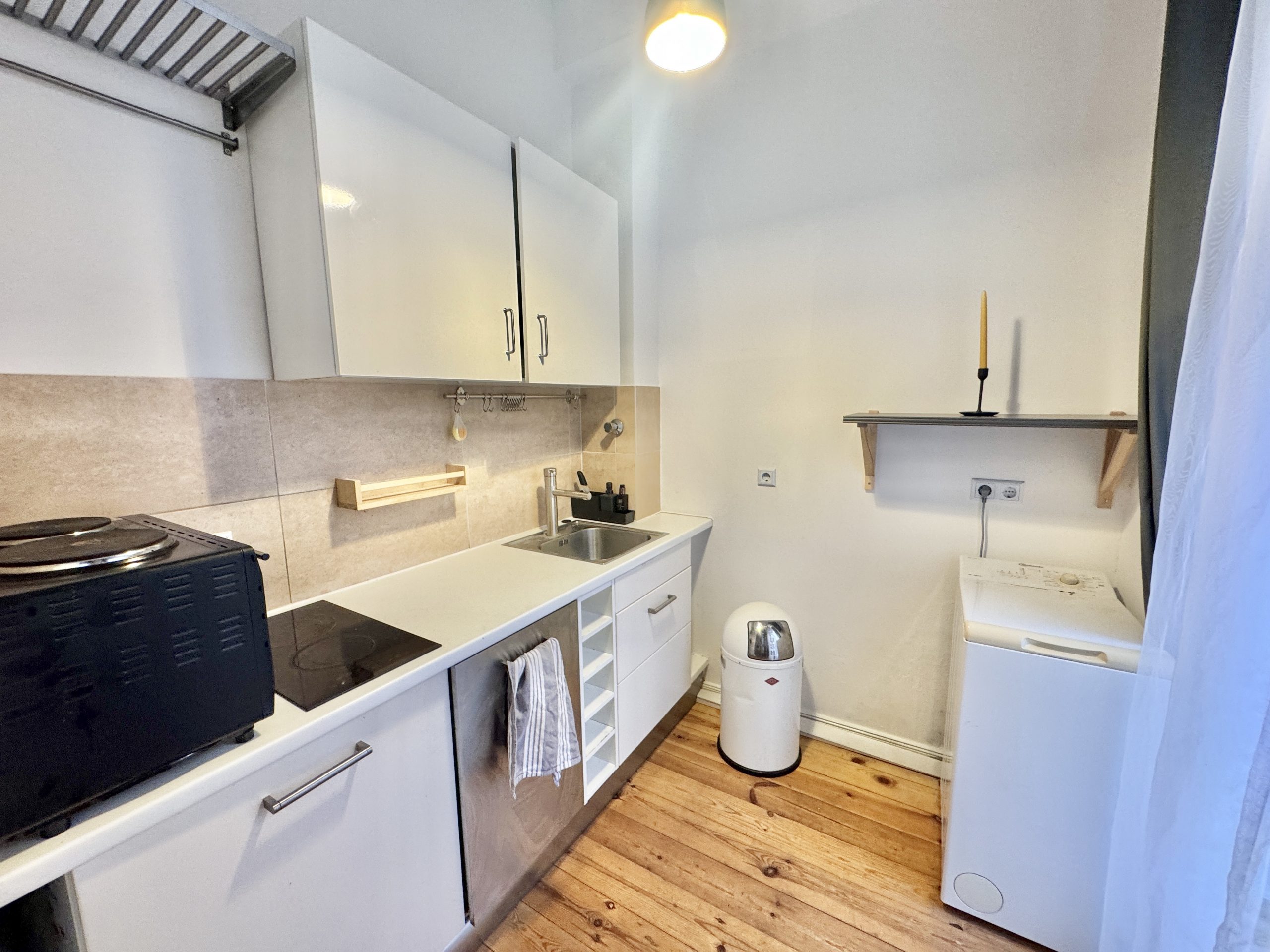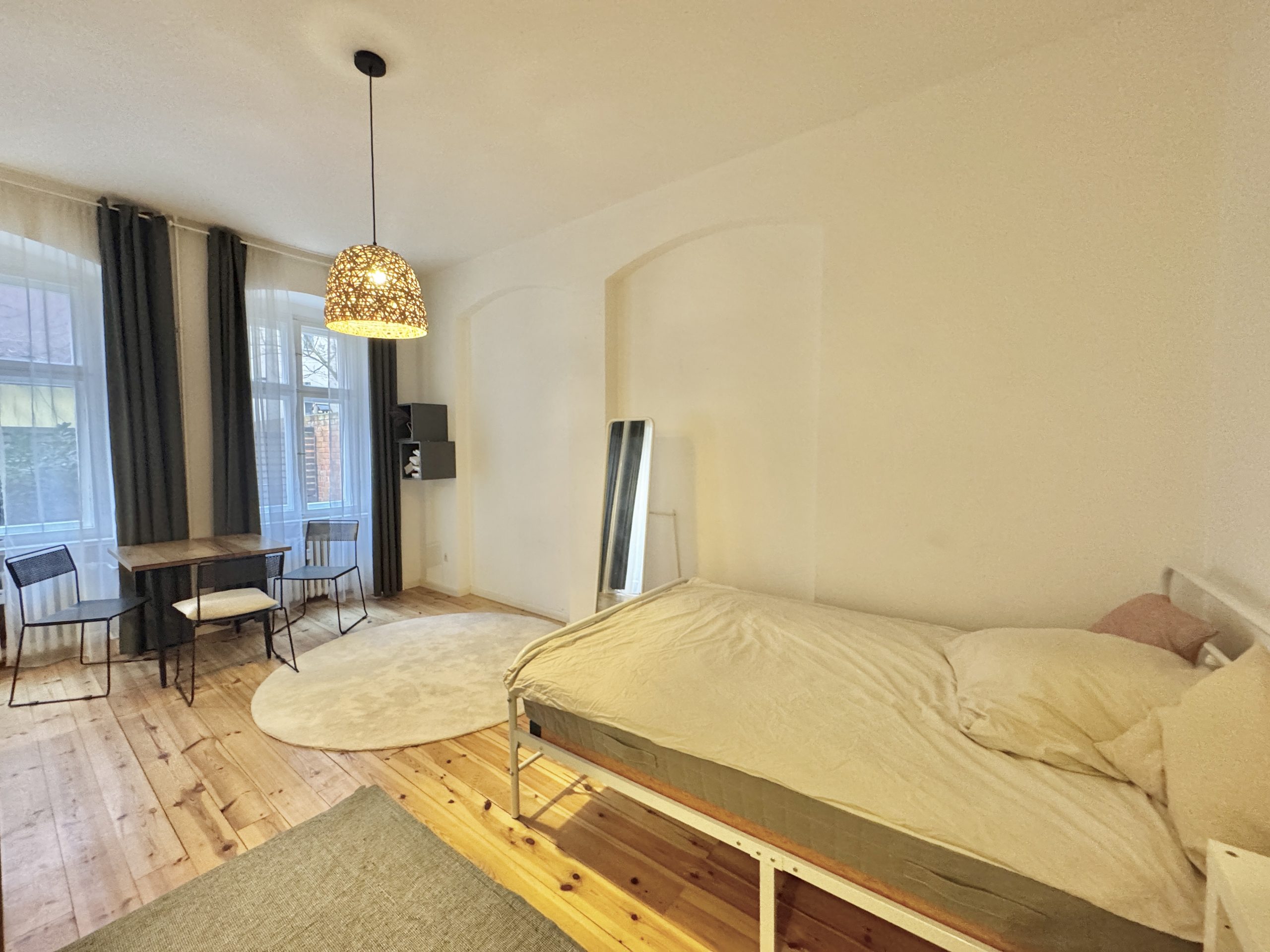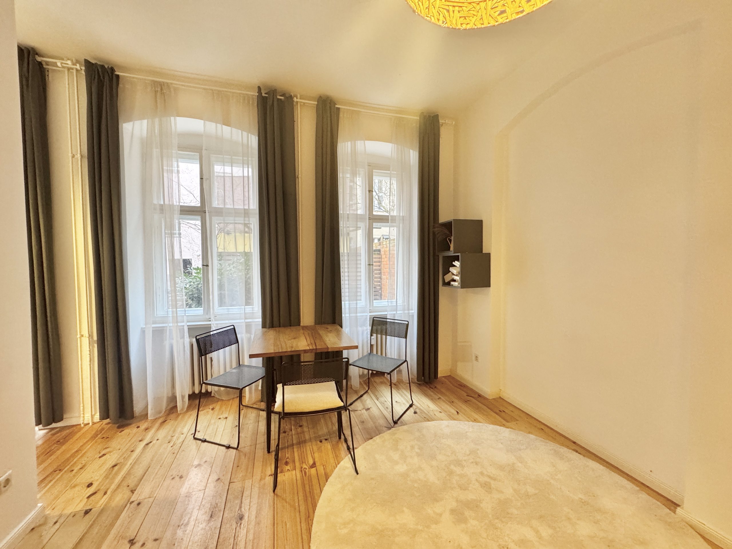 Diese charmante Altbauwohnung im Erdgeschoss eines ruhigen Hinterhauses kombiniert historischen Flair mit modernem Wohnkomfort. Auf ca. 40,68 m² erwartet Sie ein offenes Wohnkonzept, ideal für eine Person. Der Wohn- und Schlafbereich erstreckt sich über rund 21 m² und überzeugt mit hohen Decken sowie zwei großen Fenstern, die den Raum mit Tageslicht durchfluten. Eine private Terrasse bietet Ihnen eine grüne Oase mitten im Szenekiez. Die helle Küche mit Blick auf den ruhigen Hof bietet Platz für eine kleine Essgelegenheit. Das kompakte, hell geflieste Badezimmer mit Badewanne rundet das Angebot ab. Hier erwartet Sie eine einzigartige Kombination aus Ruhe und urbanem Lebensgefühl.