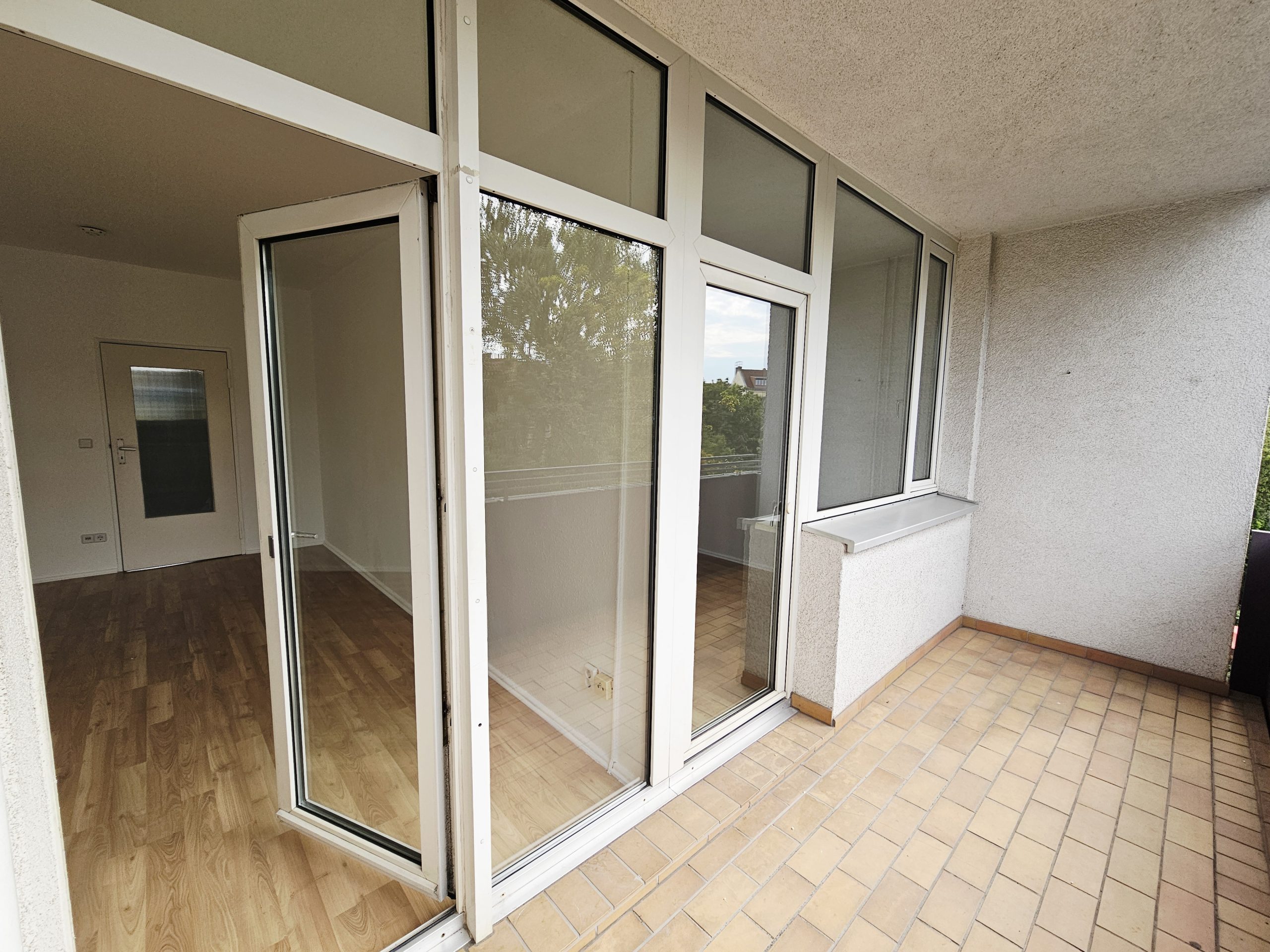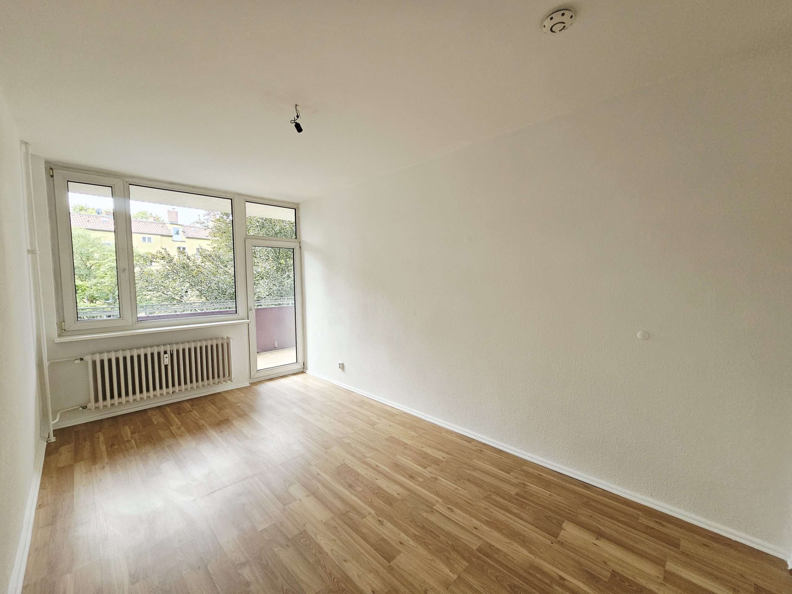 Der ideal geschnittene Grundriss und die großen Fenster sorgen für eine helles und freundliches Wohngefühl und ermöglichen einen schönen Blick in den begrünten Hof. Alle Räume sind vom Flur aus begehbar. Vom Wohn- und Schlafzimmer aus hat man direkten Zugang zum gemeinsamen sonnigen Balkon. Die Süd-Ausrichtung und die ruhige Lage laden zum entspannen und genießen ein.
